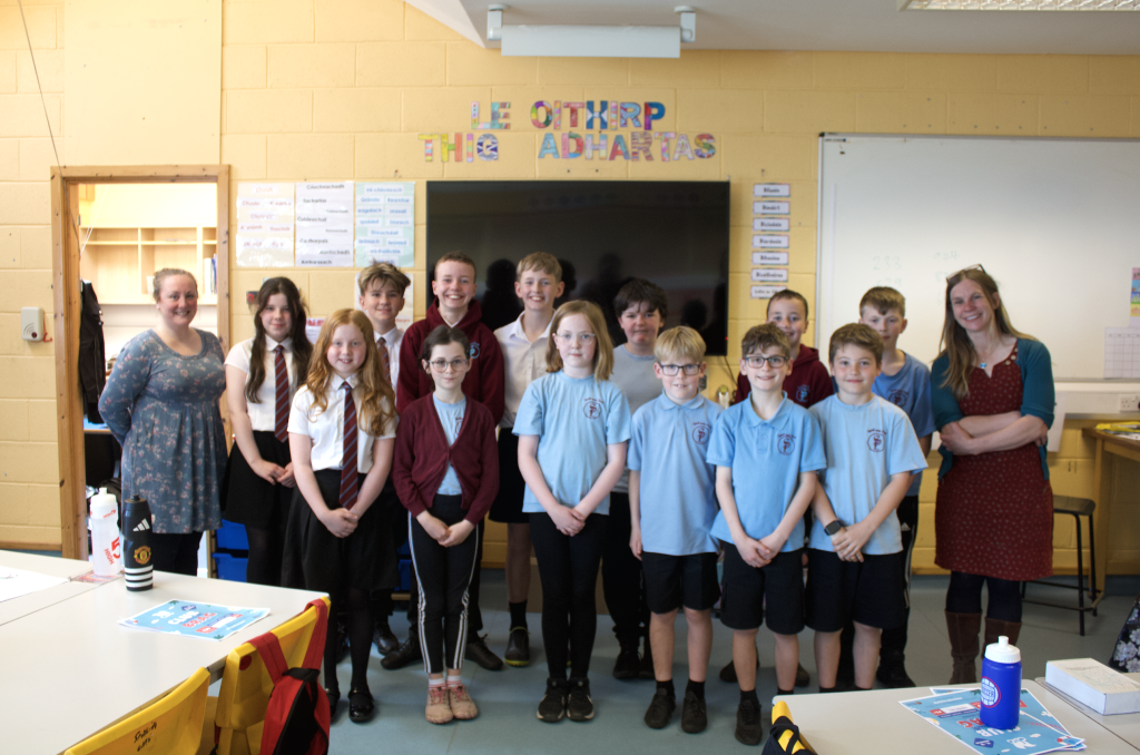 📷 Children from Sgoil nan Loch who sang a Gaelic psalm at the Stornoway Mòd, winning first place. With Gemma Malcolm, Kinloch Historical Society. June 2025. (Photo by Mary Stratman)