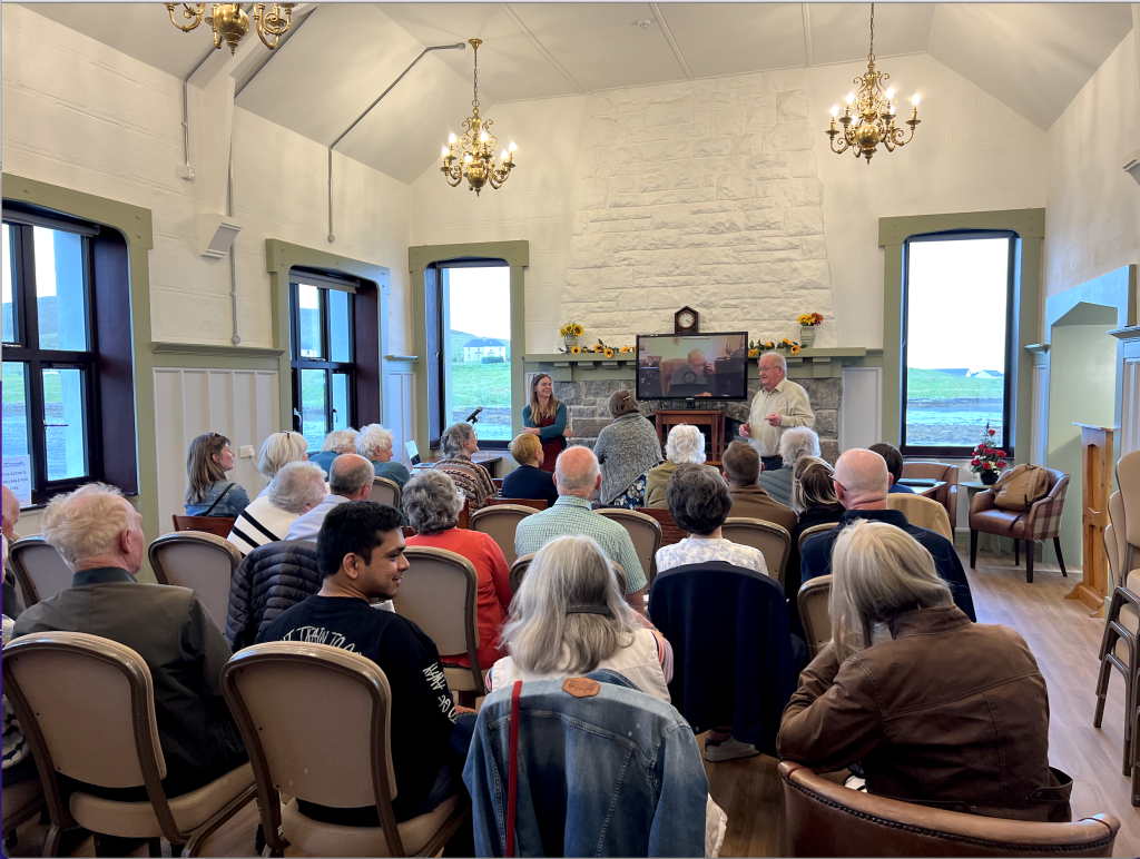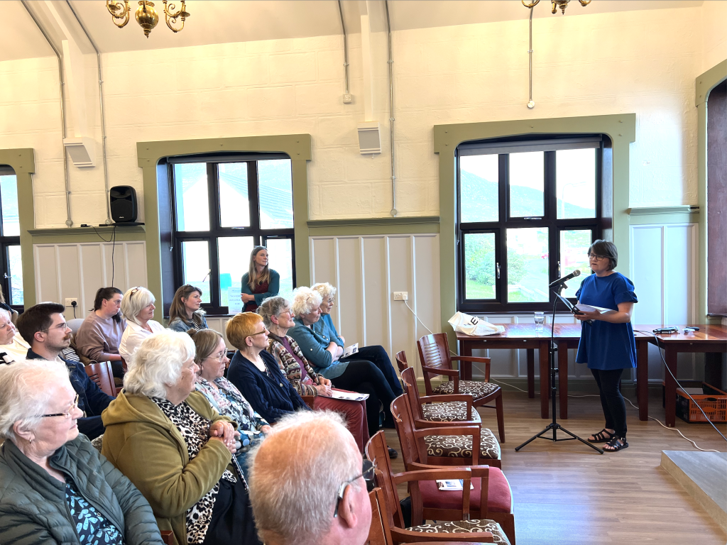📷 Jeanna Cumming singing at public talk, Leverburgh, Harris. June 2025. (Photo by Mary Stratman)