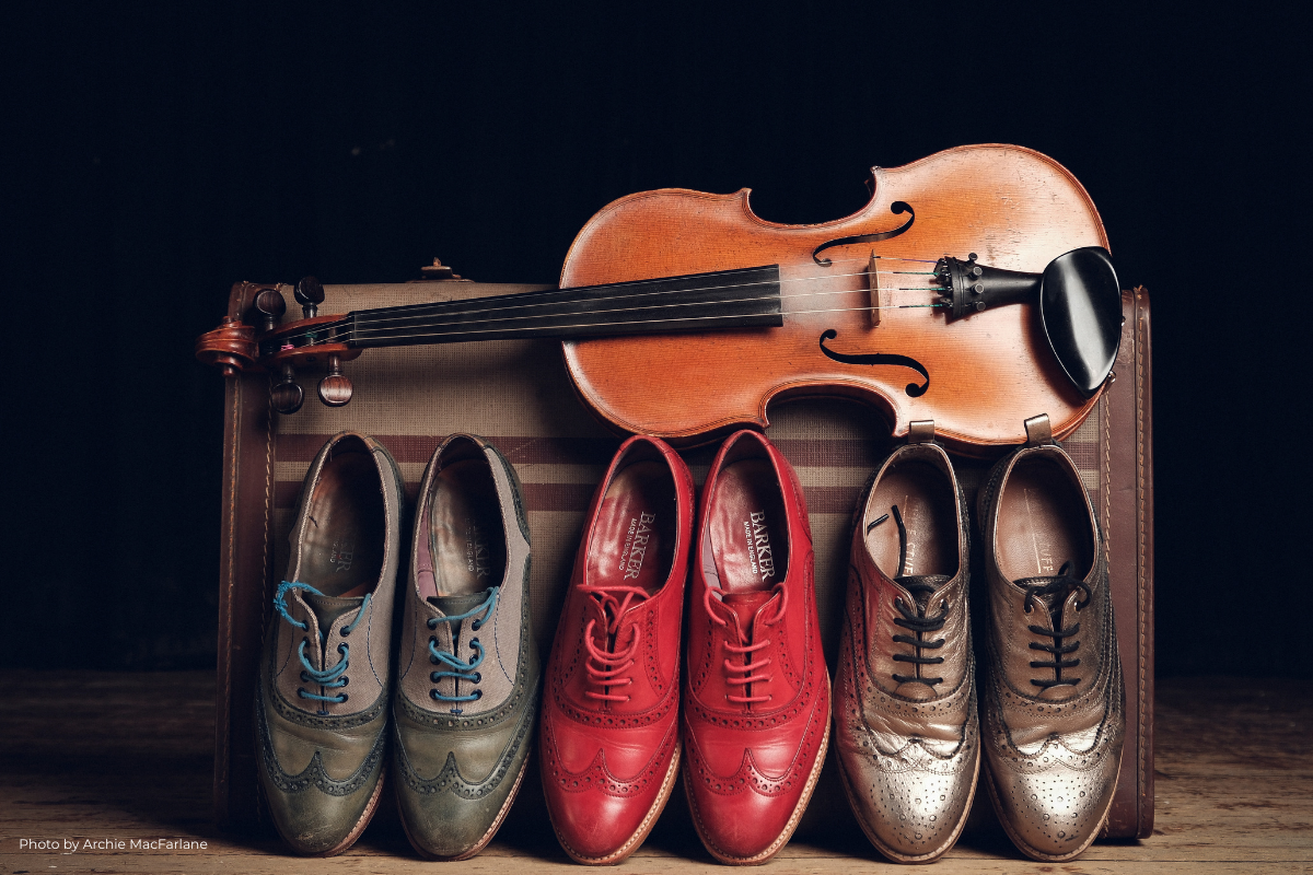 Alison grew up in the Highlands listening to Cape Breton music: her Dad had immediately felt an affinity between the percussive, energetic style and his own Gaelic heritage, and so there were always fiddle tunes filling the house and musicians calling in for house parties. Amy’s upbringing was in Galloway, where she learned fiddle by ear from older folk who still upheld the oral traditions. There were ceilidhs in the village hall where everyone would take a turn to play. But there was no stepdancing – Amy learned Highland dancing as a child but that wasn’t connected to the music she was learning.